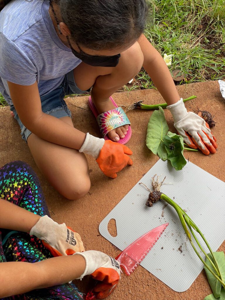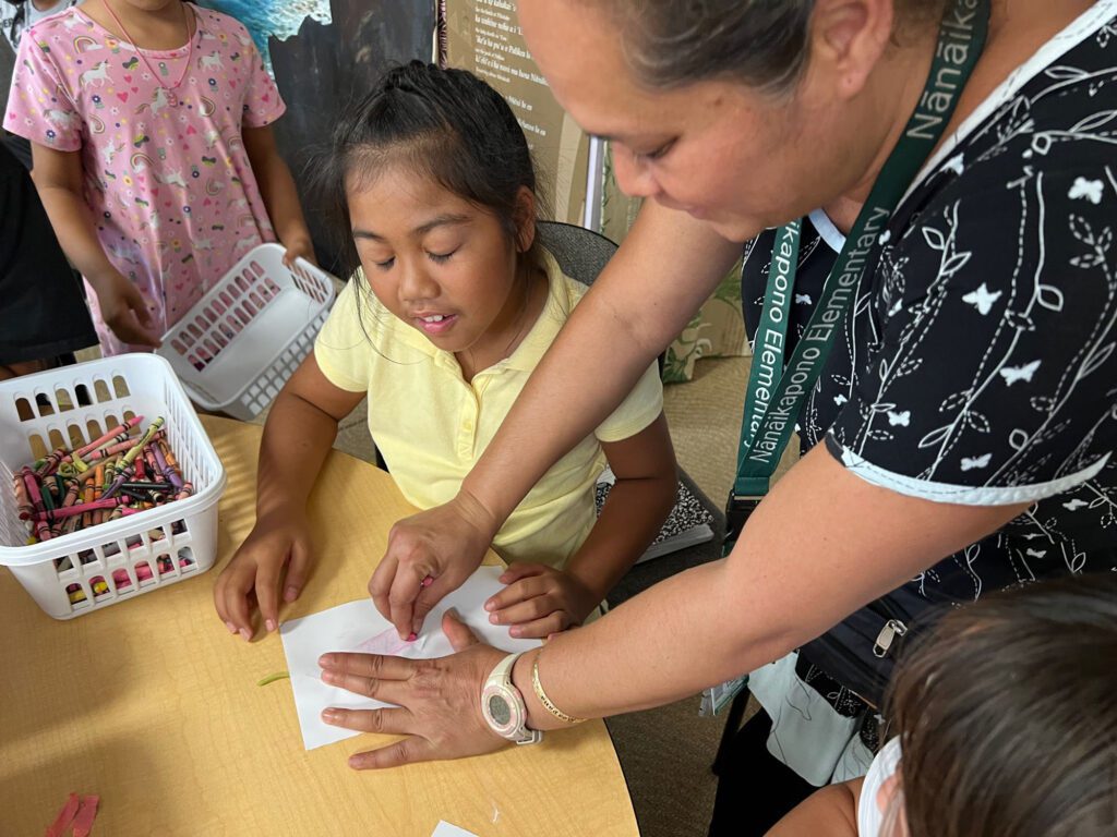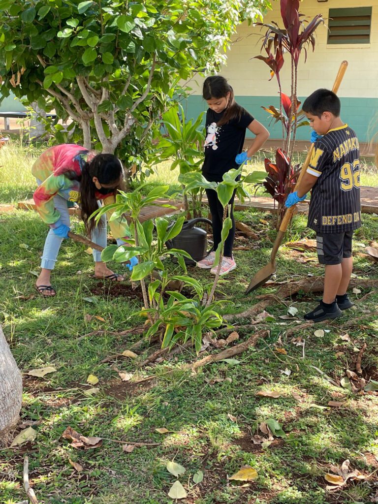 - Community Engagement: The group helped beautify the school’s museum and hula mound by planting a variety of donated HECO plants. Each plant was labeled with an index card to educate others and inspire continued stewardship. In a gesture of aloha and mahalo, the students also handcrafted gratitude cards using recycled paper, which were gifted to faculty and staff across campus.