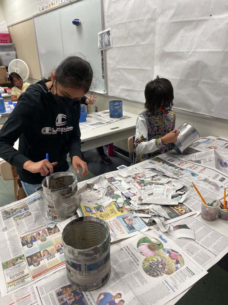 - Artistic Expression: Artistic creativity blossomed through watercolor canvas paintings and decorative planter pots made from reusable glass bottles. These projects emphasized resourcefulness while highlighting the connection between aesthetics and sustainability. Students also created games like tic-tac-toe and jacks from recycled materials, fostering teamwork, cultural play, and innovative thinking.