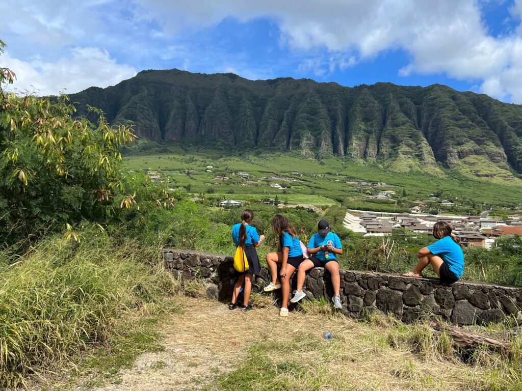 - Weekly Hikes: Students actively participate in weekly hikes that help build physical endurance while deepening their appreciation for the natural environment and the beauty of their island home. These hikes also foster teamwork, self-discipline, and a sense of connection to ʻāina.